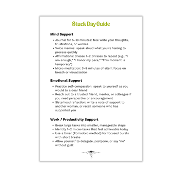 Women’s energy is cyclical, not linear. Some days you’ll feel powerful and productive. Others, your body calls for stillness. Ignoring this truth only leads to burnout. The Stuck Day Guide helps you meet yourself with compassion instead of criticism.